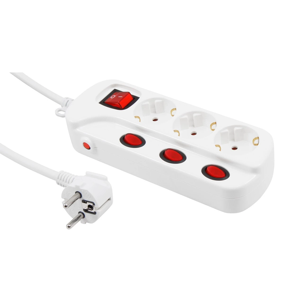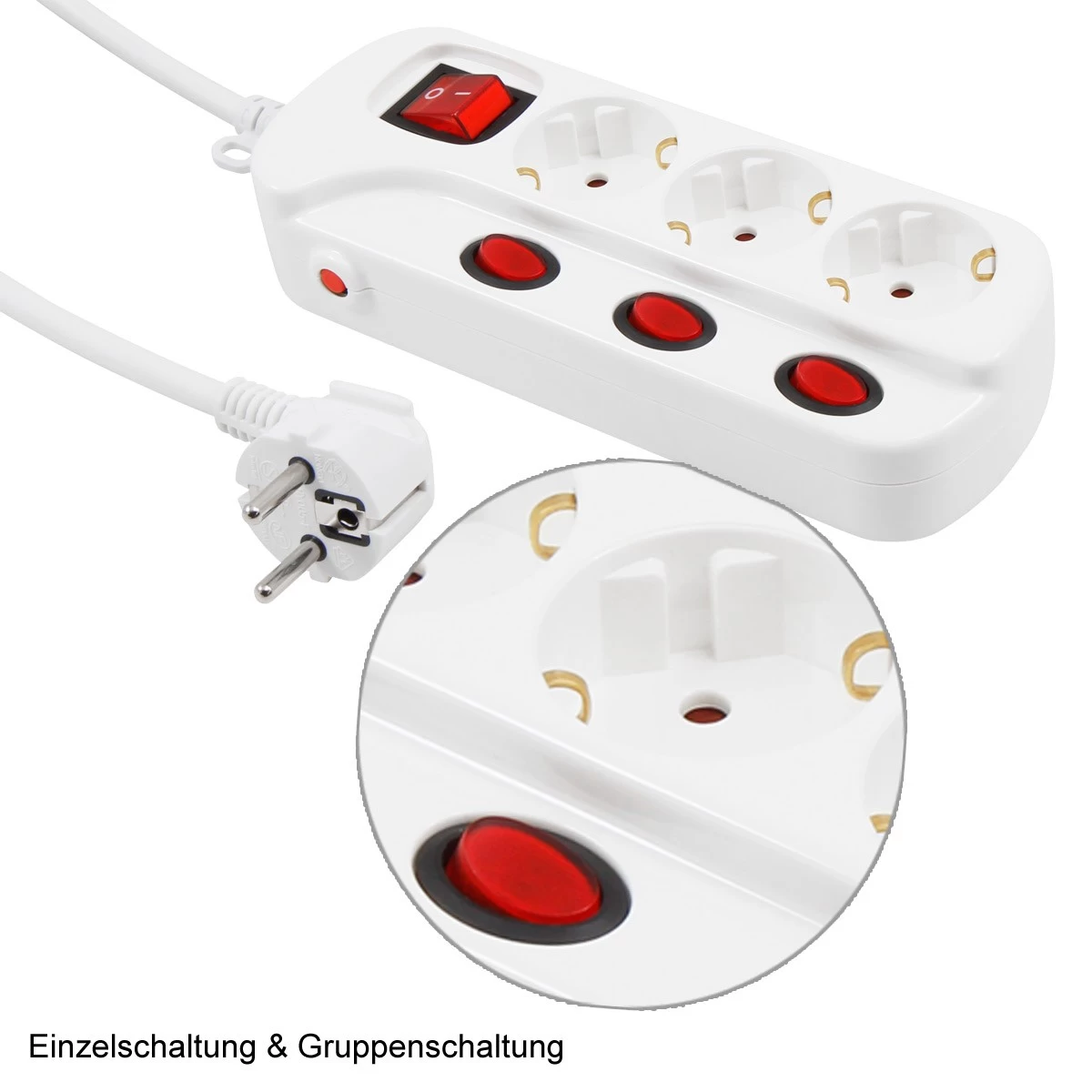 3-fach Steckdosenleiste mit Einzelschalter, weiß, 1,5m Zuleitung – max 3600W – Kindersicherung