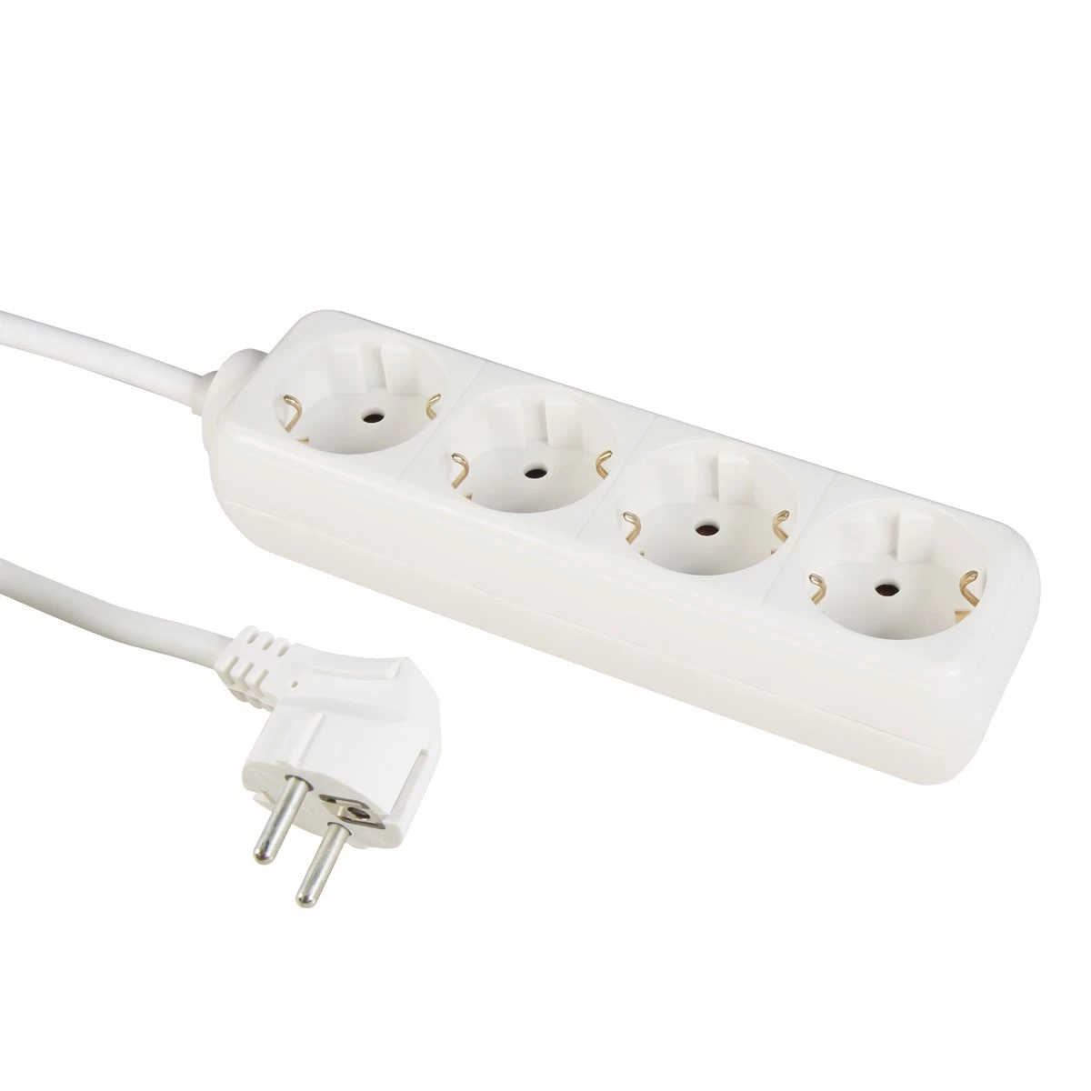 Vierfachsteckdose aus schlagfestem, weißem Kunststoff – belastbar bis 3600W