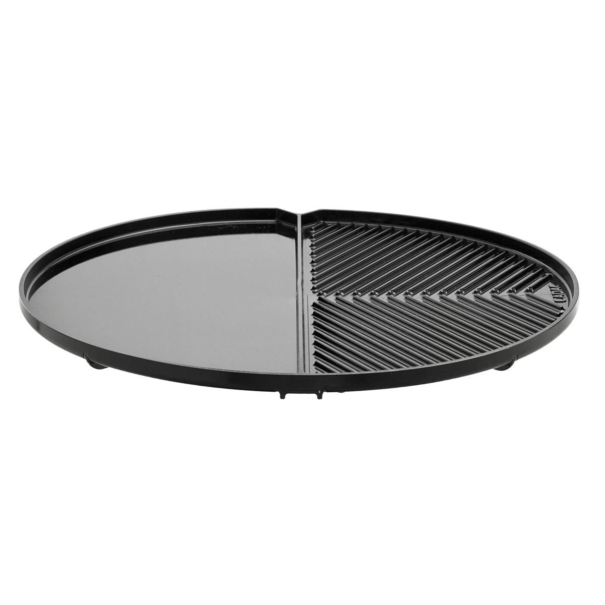 Der Grillrost ist auch leichtem Aluminiumguss und hat auf der einen Seite Rippen und auf der anderer Seite ist die Platte glatt. So kannst Du gleichzeitig 2 verschiedene Speisen auf unterschiedlichen Oberflächen grillen. Die glatte Seite eignet sich besonders für z.B. Bratkartoffeln, Pilze oder Gemüse. Die gerippte Seite dagegen ist für Grillgut geeignet bei dem Du ein Branding und Röstaromen erzeugen willst.