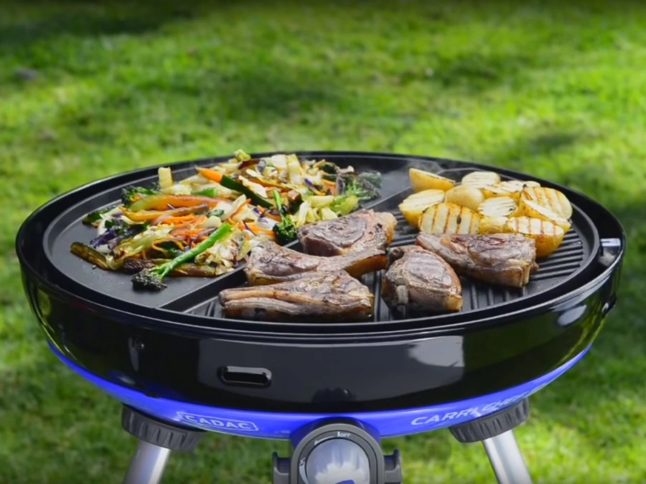 Die geteilte Grillplatte ist mit der CADAC GreenGrill Oberfläche versehen.