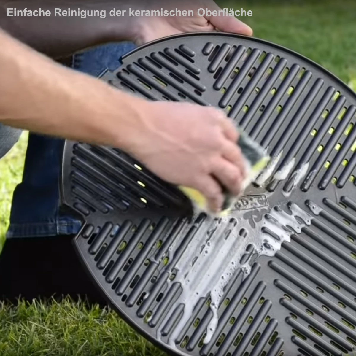 Der leichtgewichtige Rost hat eine moderne GreenGrill Beschichtung aus natürlichen Rohstoffen. Diese sorgt für eine einfache Reinigung und Spaß beim Braten ohne Anbacken des Grillguts.