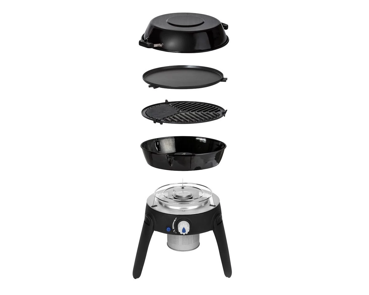 CADAC SAFARI CHEF 30 BBQ HP – Kartuschenbetrieb – inkl. Topfständer, Rost, Grillplatte, Pfanne/Deckel (Betrieb an Schraub-Kartusche)
