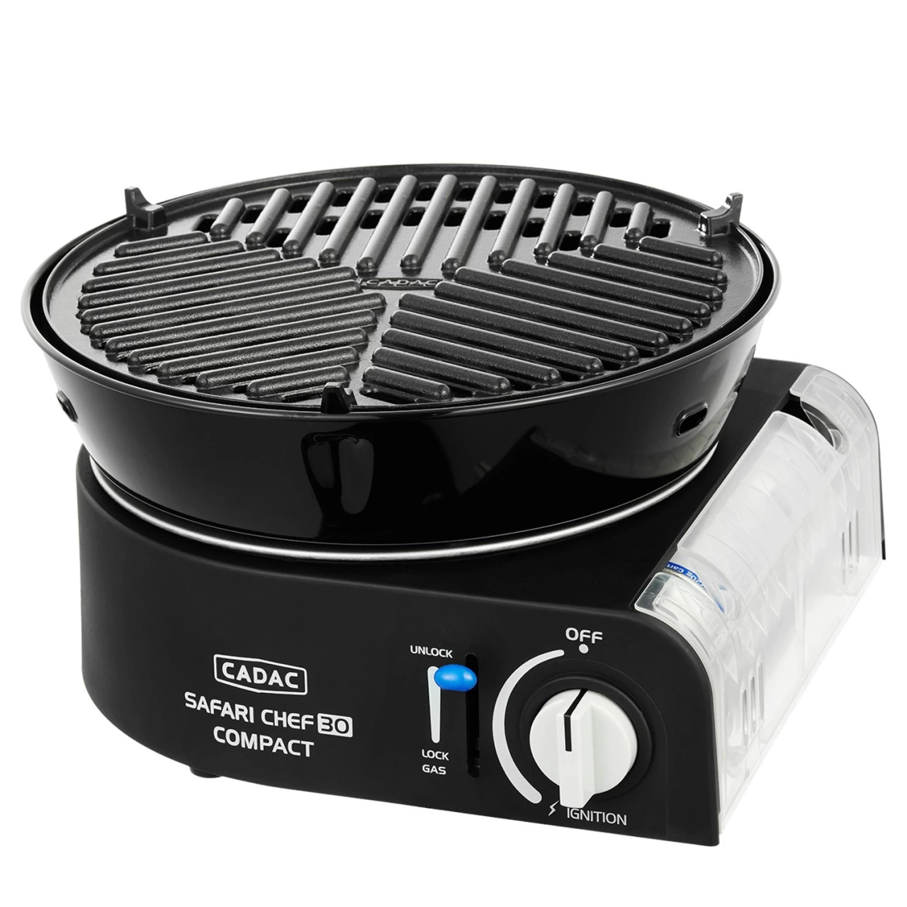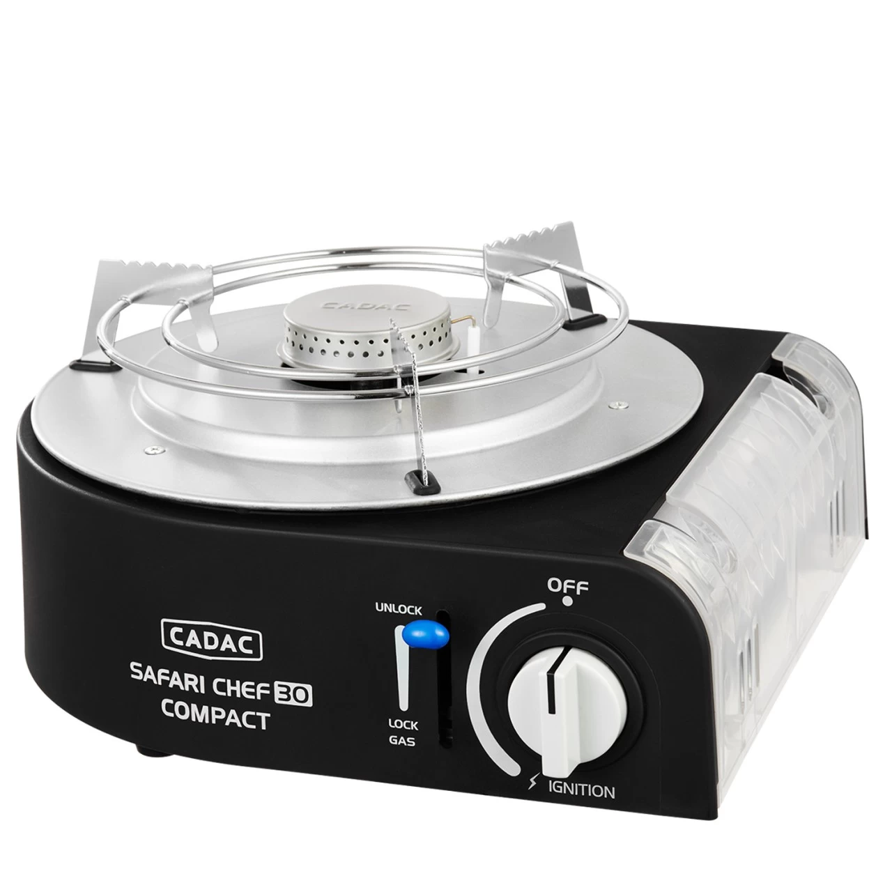 Der CADAC SAFARI CHEF CMPACT LITE ist eine sehr flexibel einsetzbare und äußerst kompakte Kochstelle für unterwegs. Wir empfehlen das Modell oder das COMPACT LITE Modell (ohne glatte Grillplatte) für alle, die auf Platz und Gewicht achten müssen und keine Gasflasche oder den Wohnmobilanschluss verwenden wollen. Besonders praktisch ist, dass die 227g Bajonettkartusche weltweit erhältlich ist.