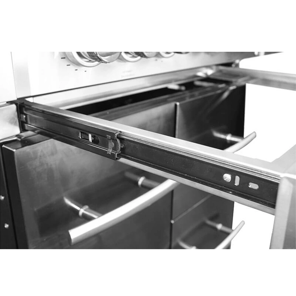Die gesamte Wanne und die Auszüge sind aus Edelstahl und so rostfrei und leicht zu reinigen. Die herausnehmbare Fettpfanne hat links und rechts Griffe für eine einfache Handhabung.