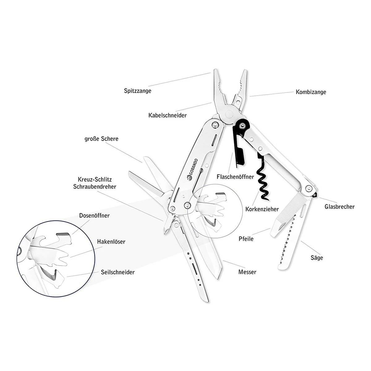 Wir haben viel Entwicklungsarbeit in dieses Multifunktionswerkzeug gesteckt und es zu einem hervorragenden Begleiter für Sie gemacht. Das CITY JUNGLE liegt gut in der Hand, lässt sich leicht bedienen und ist äußerst solide. Der verwendete ChromVanadium Stahl ist dauerhaft rostfrei und speziell für Werkzeuge gehärtet.