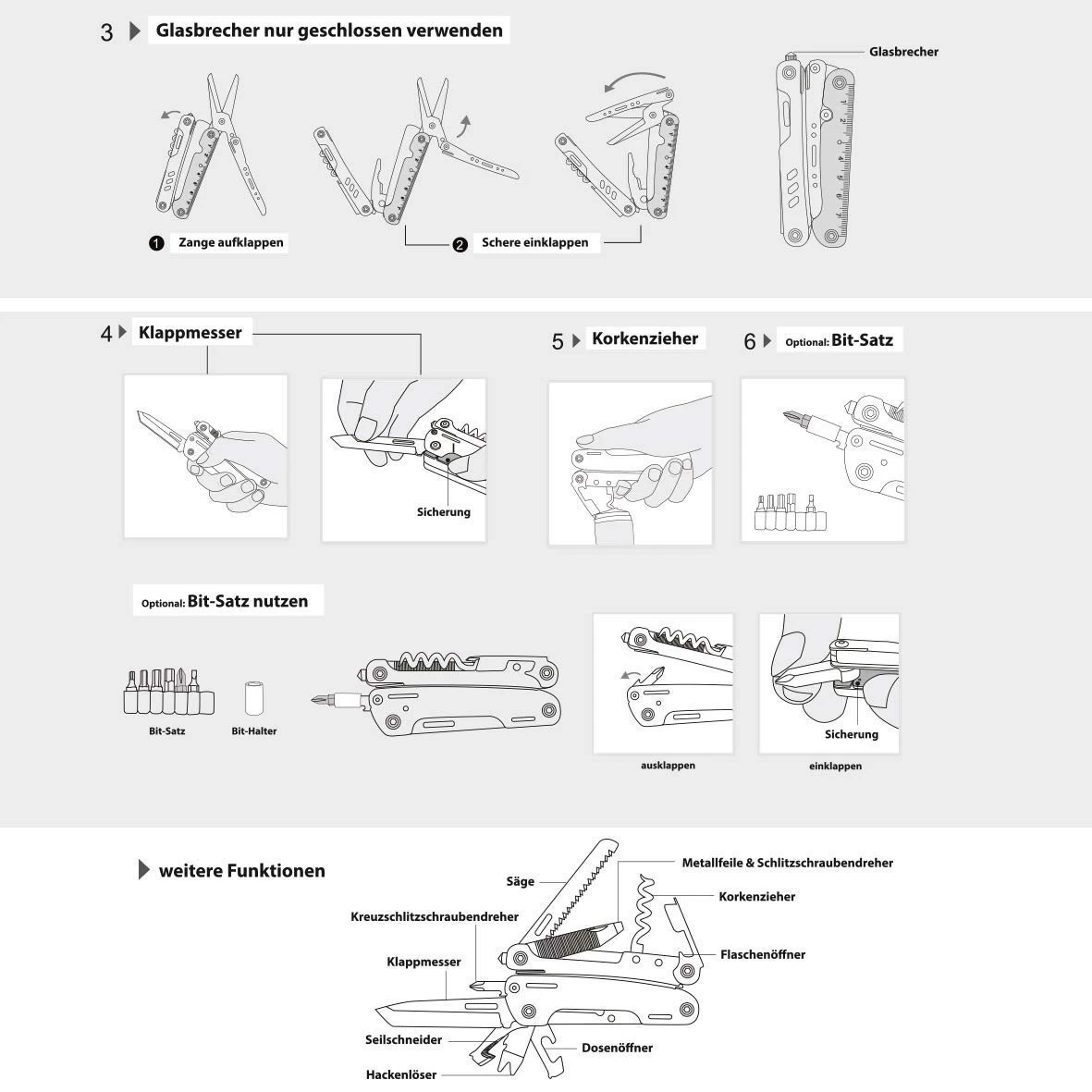 Als nützliches Extra legen wir noch einen Satz Schraubenbits zum Multitool dazu. Damit haben Sie einen voll ausgestatteten Werkzeugkoffer immer in der Tasche dabei. Was dann auch kommen mag: Sie sind bestens ausgerüstet.