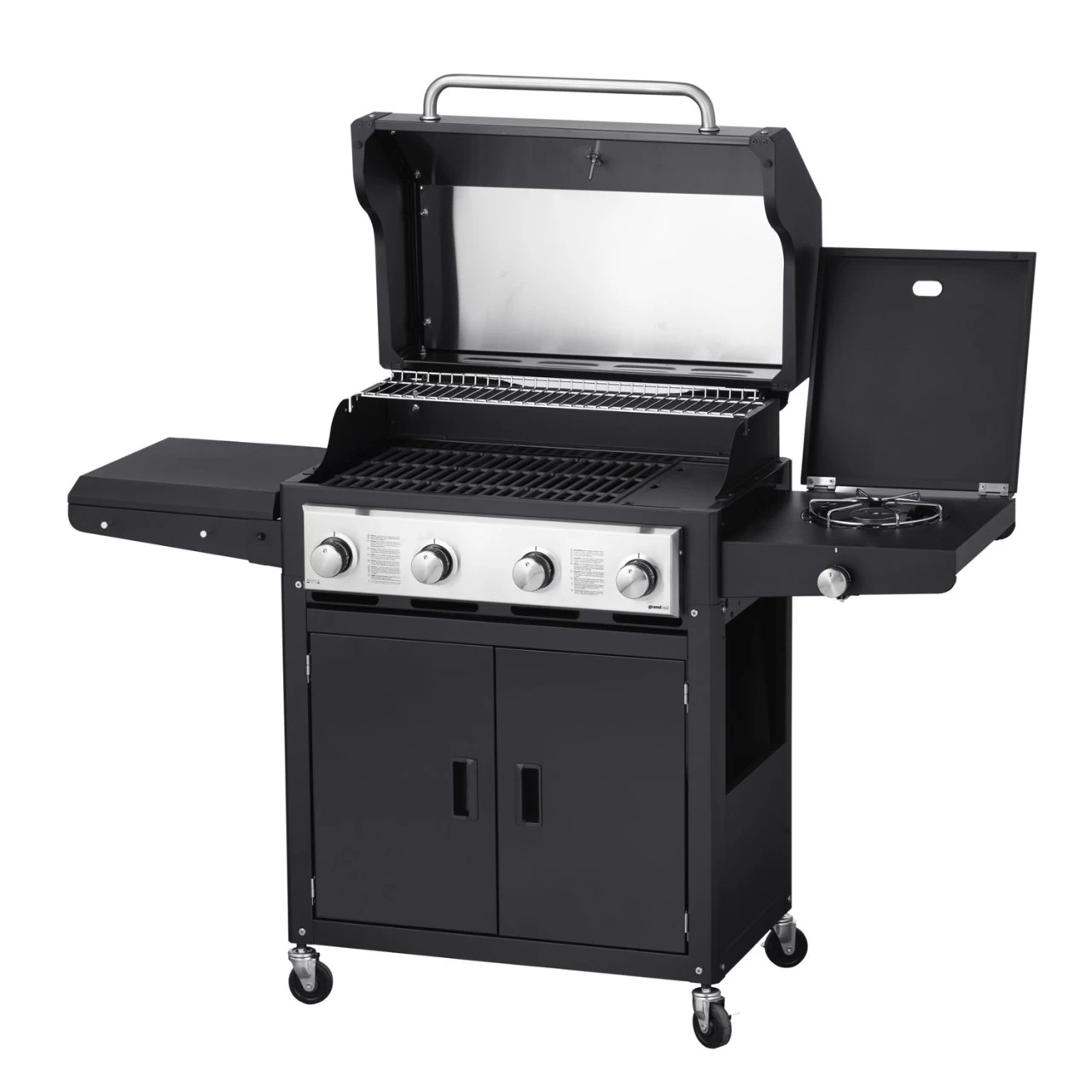 Der Gasgrill ist mit 4 starken Brennern ausgestattet und hat zusätzlich noch einen Seitenkocher.