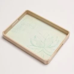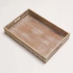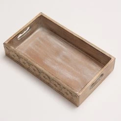 Tablett – Dekotablett – Blumenbordüre – Mangoholz – L: 34,7cm – B: 20cm – Weiß Gebleicht