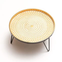 Tablett – Dekotablett – Blumenbordüre – Mangoholz – L: 45cm – B: 30,5cm – Weiß Gelbeicht