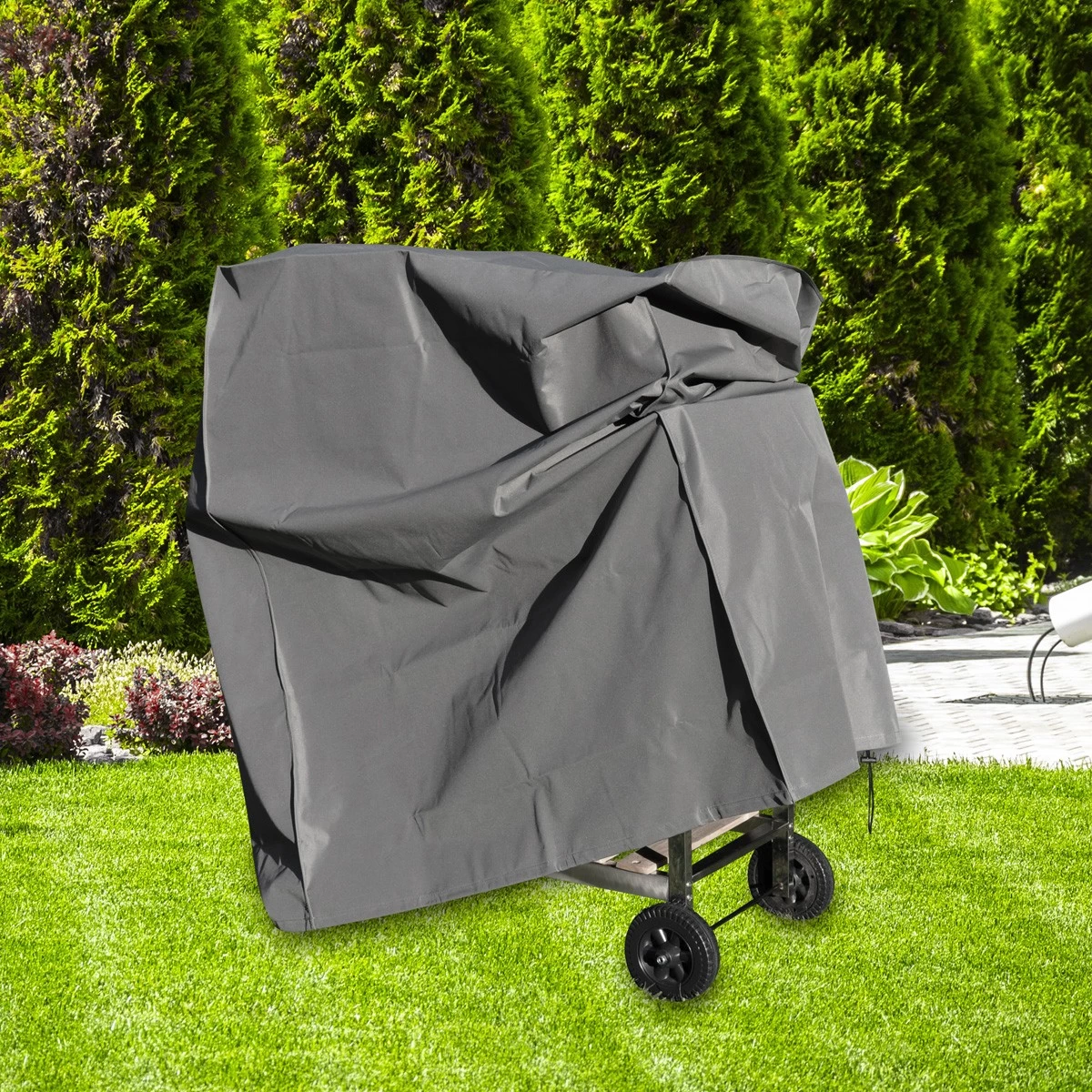 Du kannst die Haube universell für Deinen Gasgrill oder Grillwagen nutzen. Die Haube ist rechteckig und praktisch in der Anwendung, weil die Grillabdeckhaube leicht mit einer Kordel zu befestigen ist.