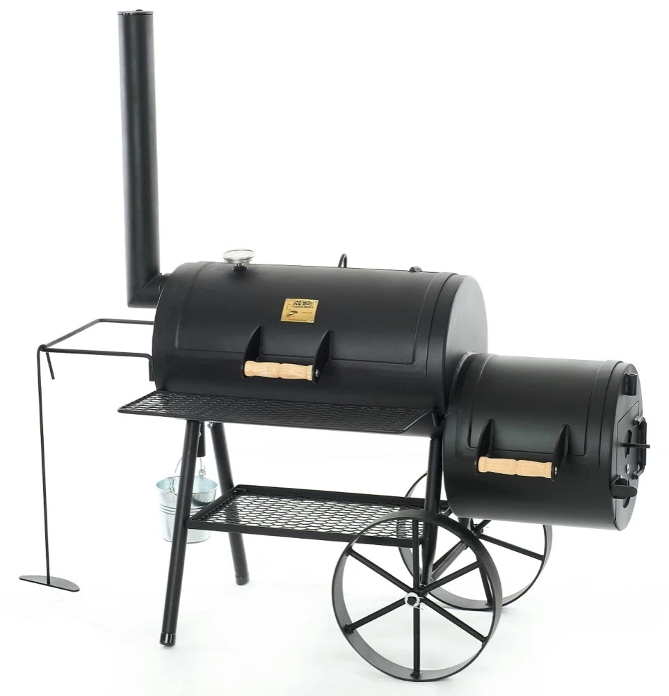 Gleichzeitig haben Sie dank des integrierten Thermometers die Garkammer immer im Blick. Und kontrollieren mit dem Schürhaken die Glut der Feuerbox perfekt. Der Clou: Mit einem optionalen Grillrost für die Feuerbox erweitert sich der Spielraum noch einmal deutlich. Joe’s Barbeque 16″ Wild West – ein Smoker im klassischen Lock fürs rustikale BBQ!