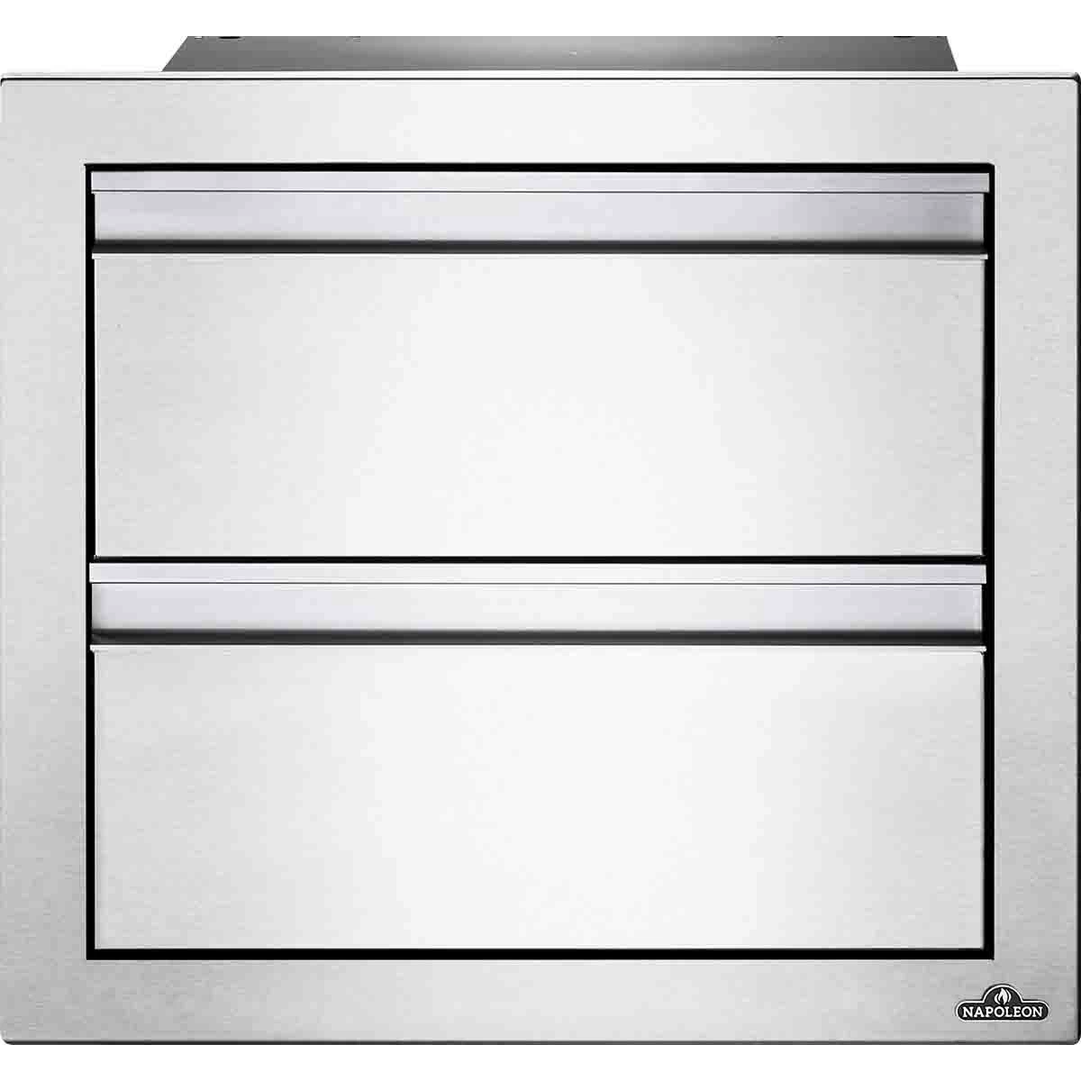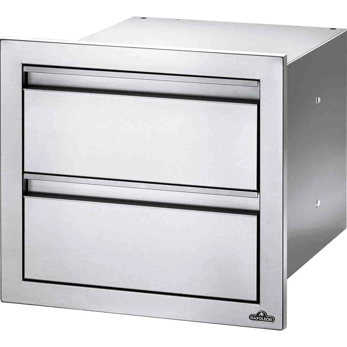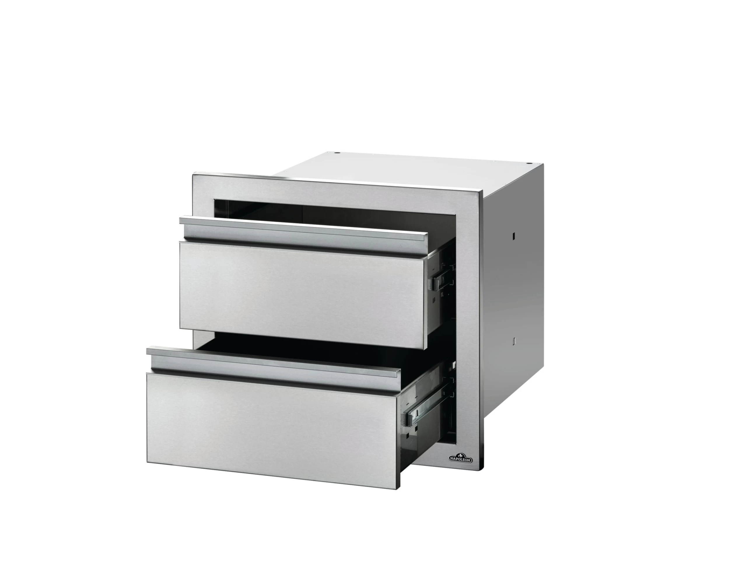 Zwei praktische Napoleon® Schubladen zum Verstauen der wichtigsten Grillutensilien wie Zange, Bürste und Co. Die Schubladen bestehen aus hochwertigem Edelstahl mit Softclose-Funktion. Robust und langlebig in edlem Design. Im 2er-Set für großen Platzbedarf.