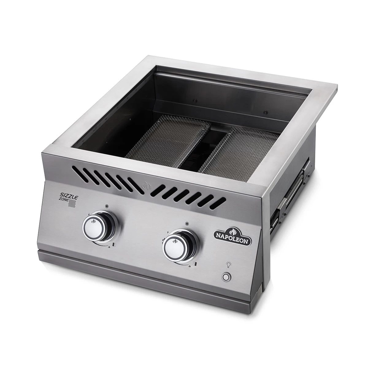 Ihr liebt Steaks, Röstaromen & Brandings? Dann kommt Ihr an einem nicht vorbei. Mit der Einbau-Sizzle Zone von Napoleon könnt Ihr den in Eure Outdoor-Küche integrieren. Bei bis zu gart Kurzgebratenes innerhalb kürzester Zeit und mit . Auf der großen Grillfläche ist für Steaks und Burger, die garantiert in bester Grillmeister-Qualität gelingen.
