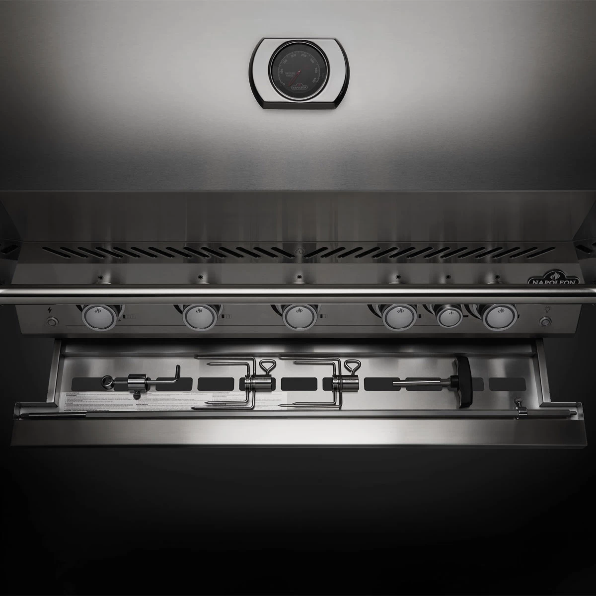 Das mehr als verlässliche ACCU PROBE Thermometer von Napoleon ist im Deckel eingelassen und zeigt die Innenraumtemperatur des Gasgrills an.