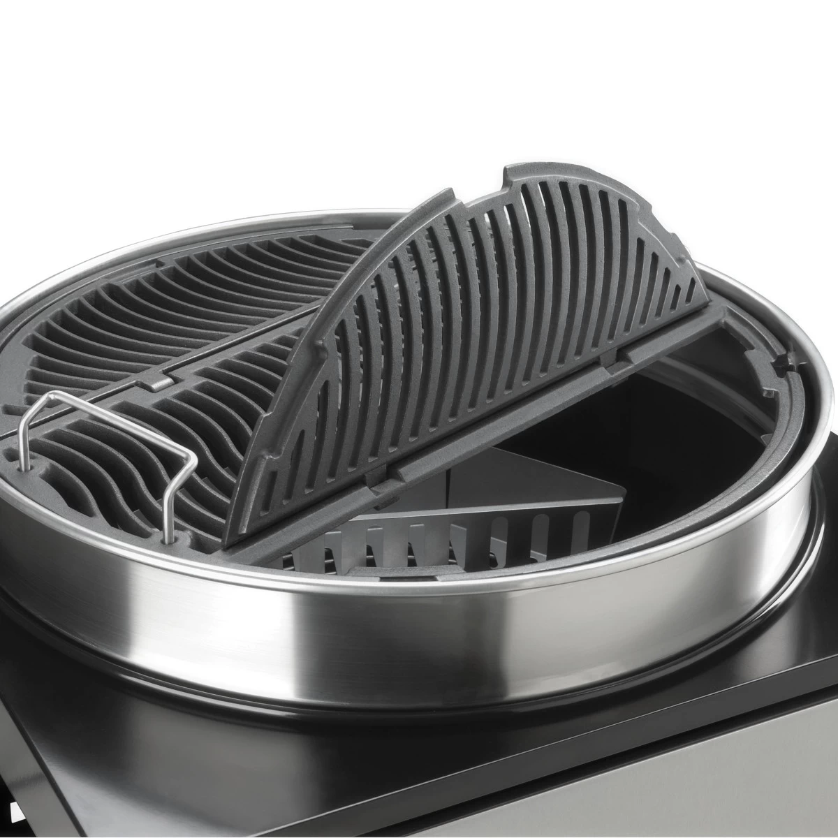 Für eine gleichmäßig verteilte und lang anhaltende Wärmeverteilung sorgt das dreifach höhenverstellbare, klappbare und massive WAVE™ Gussgrillrost (Ø 57 cm). Die Holzkohlekörbe, die mitgeliefert werden, machen indirektes Grillen zudem zur Kleinigkeit. Das Grillzubehör ist auf der klappbaren Edelstahl-Ablage bequem abzulegen und zu benutzen.