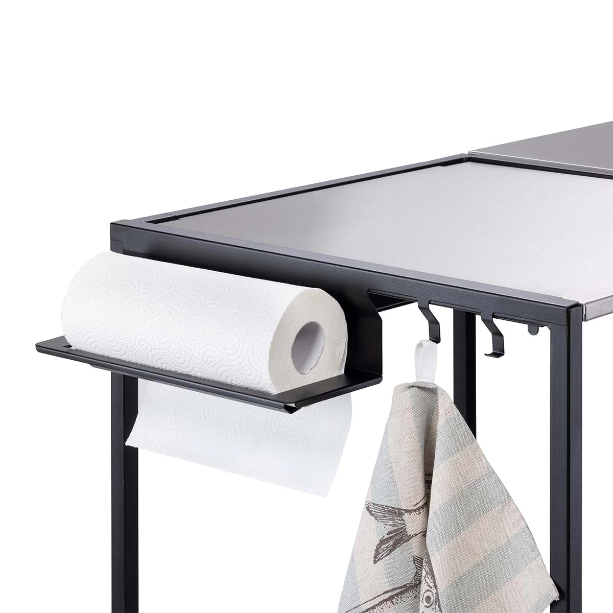 OMK ist die erste mobile Outdoor Küche, die Ihr mit nur wenigen Handgriffen werkzeuglos auf- und wieder abbauen könnt – und das ganze in nur einer Minute. Mit der passenden Küchenrollenhalterung zum Einhängen in den Beistellwagen oder die Garage könnt Ihr Eure One Minute Kitchen im Handumdrehen erweitern und habt die Küchenrolle immer direkt zur Hand. Die zusätzlichen zwei Haken könnt Ihr perfekt für Euer Geschirrtuch oder die Grillzange zum Aufhängen verwenden. Der Küchenrollenhalter ist aus verzinktem Stahlblech und schwarz pulverschichtet – Made in Germany.