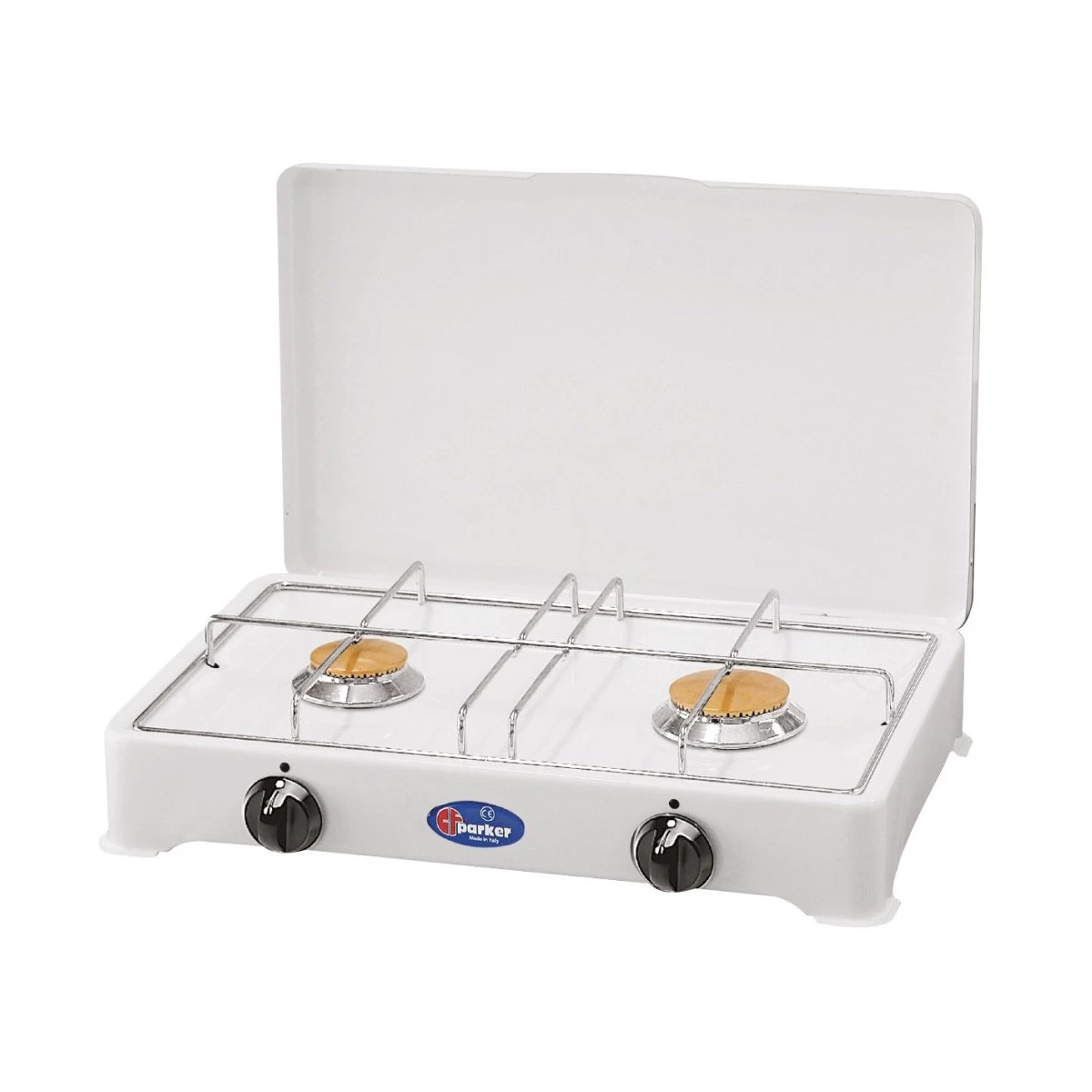 PARKER Zweiflammiger Kocher – weiß lackiert – Zündsicherung – 2,3kW, 1,65kW