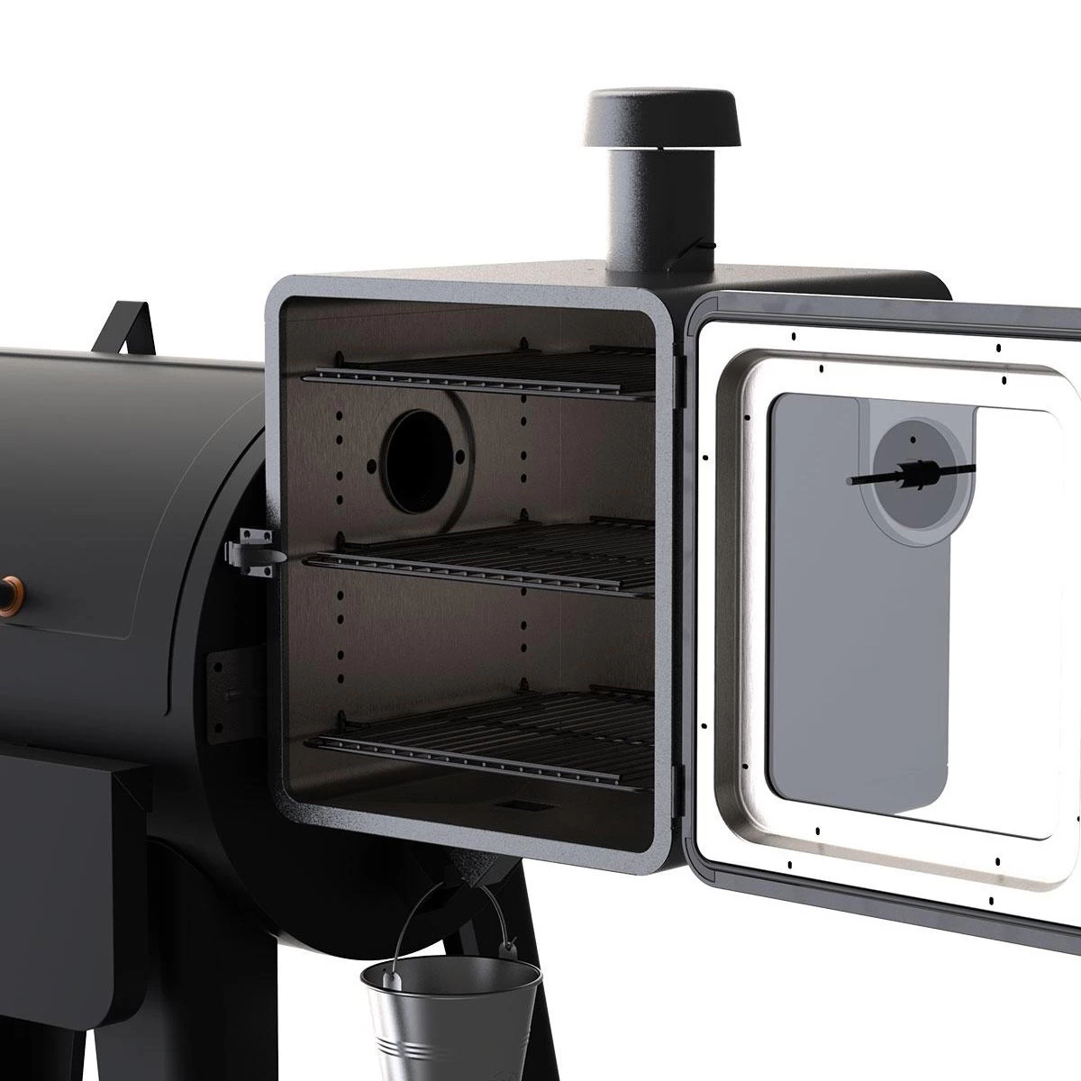 Montiert ist der Side Smoker Kalträucheranbau mit wenigen Handgriffen. Auch passt er vom Design her perfekt zu Deinem PIT BOSS Pelletgrill. Die feuerfeste Lackierung ist die gleiche wie beim Pelletgrill.