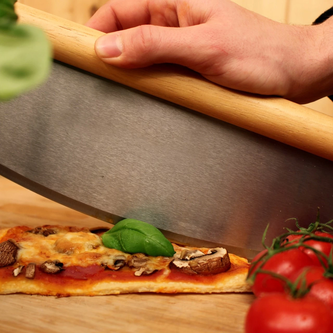 Pizzaschneider – Wiegemesser Edelstahl mit Holzgriff