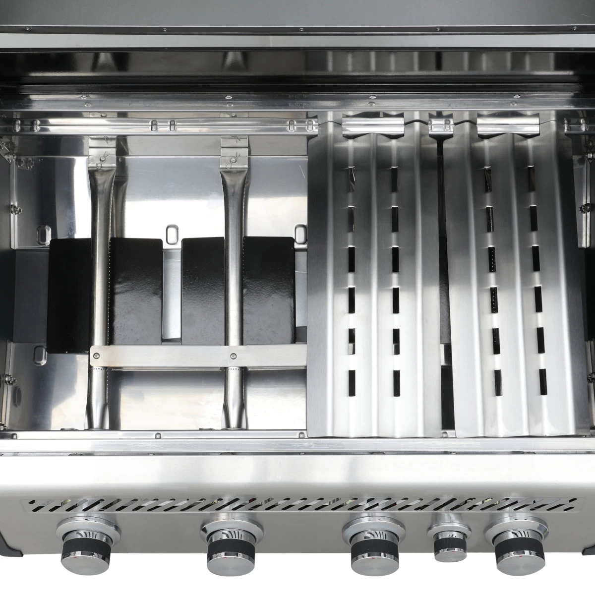 Die qualitativ hochklassigen Brenner aus Edelstahl haben eine Gesamtleistung von 14 kW und sind im robustem mit eingebaut. In dem Brennergehäuse wird die Hitze besonders gut von Umwelteinwirkungen wie Kälte isoliert. Das mit extra flachen Flammenverteilern sorgt für eine gleichmäßige Hitzeverteilung unter dem Grillrost und in der Garkammer. Die Flammenverteiler funktionieren ebenso als Schutz für die Brenner, damit diese durch hinunter tropfenden Saft bzw. Fett nicht verstopfen.