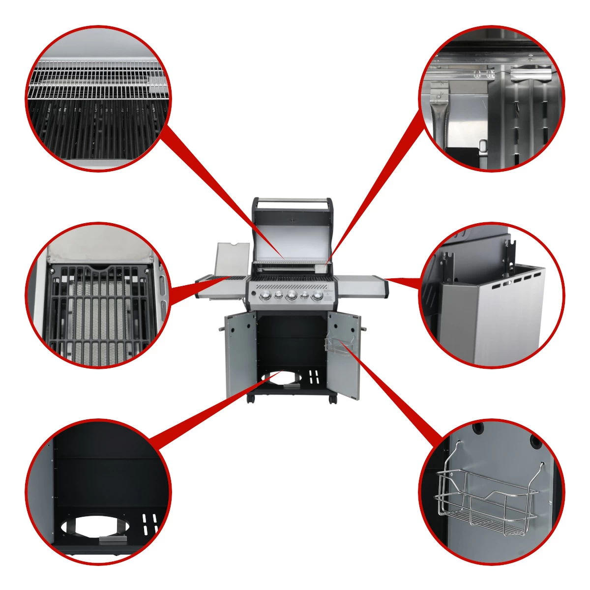 - 800 °C Infrarot Seitenbrenner mit Gussrost (höhenverstellbar)