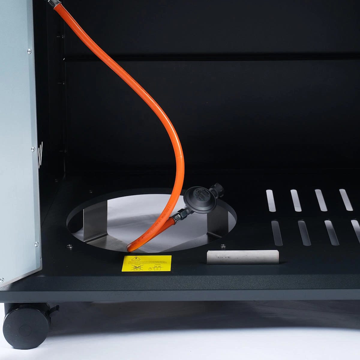 Die qualitativ hochklassigen Brenner aus Edelstahl haben eine Gesamtleistung von 14 kW und sind im robustem mit eingebaut. In dem Brennergehäuse wird die Hitze besonders gut von Umwelteinwirkungen wie Kälte isoliert. Das mit extra flachen Flammenverteilern sorgt für eine gleichmäßige Hitzeverteilung unter dem Grillrost und in der Garkammer. Die Flammenverteiler funktionieren ebenso als Schutz für die Brenner, damit diese durch hinunter tropfenden Saft bzw. Fett nicht verstopfen.