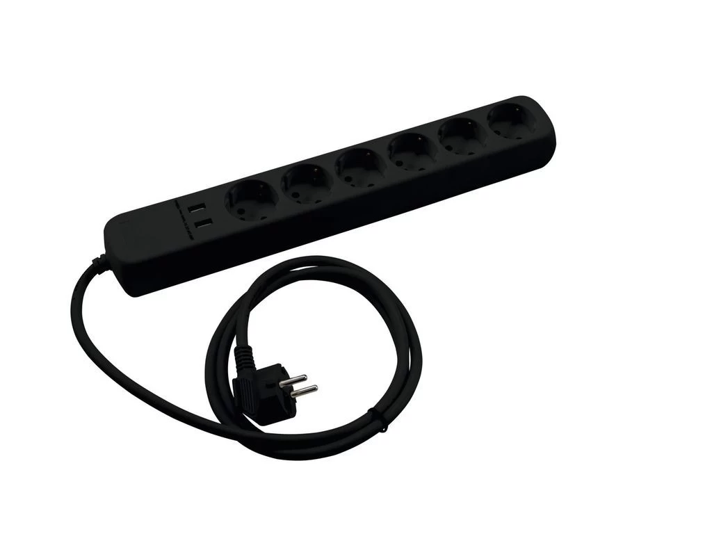 Stromkabel / Steckdosenleiste | 6-Fach | 2x USB-Ladeplatz