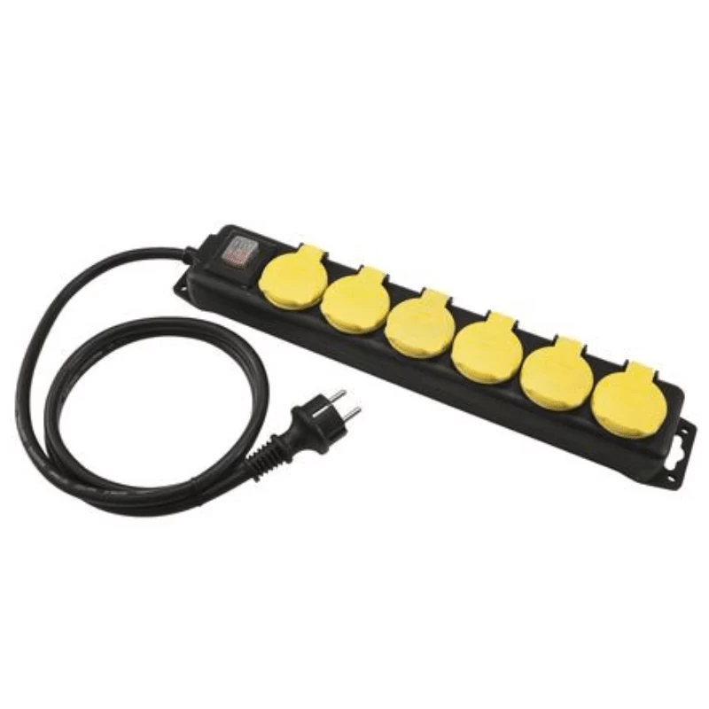 Stromkabel / Verlängerung | 6-Fach Verteilersteckdose | Schutzkontakt | Outdoor | 3×1,5mm² – 1,5m
