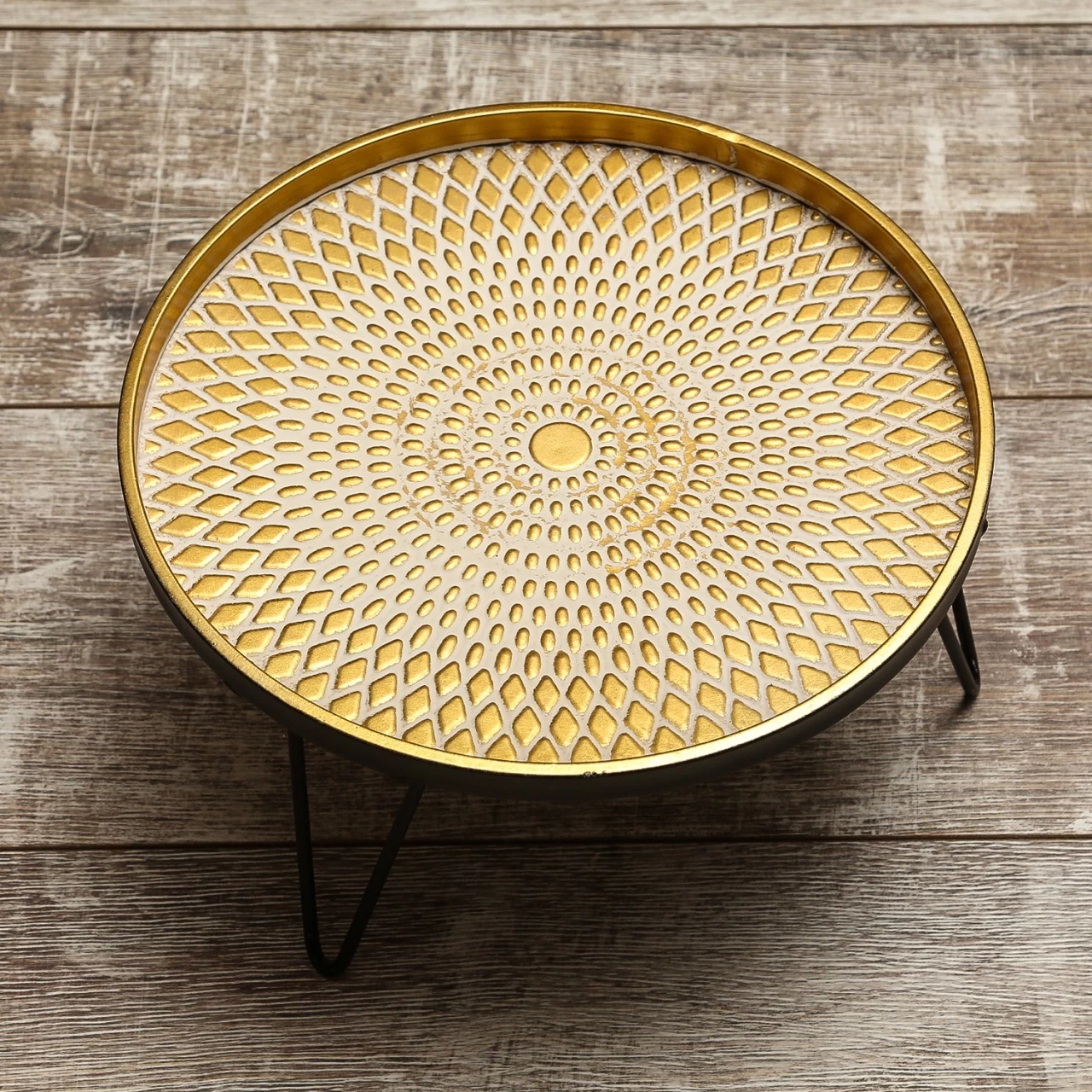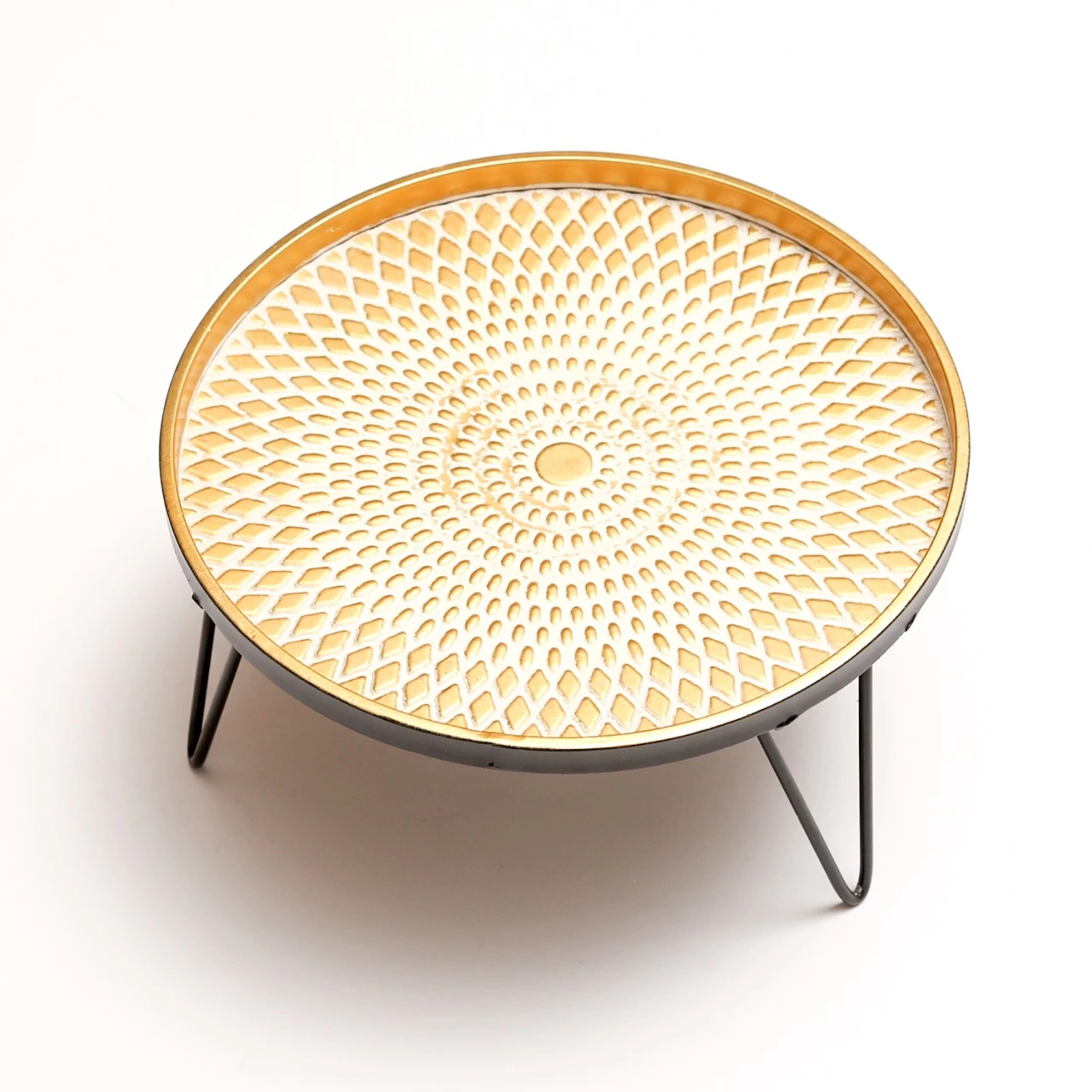 Das goldene Tablett aus Metall mit dem äußeren schwarzen Rand und den drei schwarzen Füßen ist genau richtig zum Dekorieren. Kerzen und andere Dekoration sehen auf dem Tablett einfach genial aus.