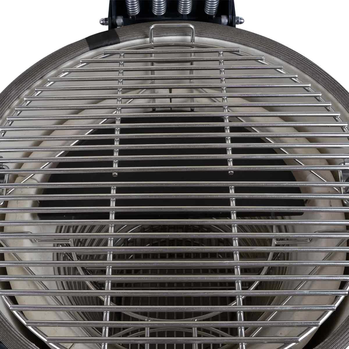 - Die sorgt für noch mehr Platz auf dem Grillrost: Der traditionell runde Kamado-Deckel lässt am Rand der Grillfläche wenig Platz nach oben. Beim The Bastard VX dagegen stößt dank der nichts an den Deckel – damit Ihr Euren Grillrost auch bis an den Rand grenzenlos belegen könnt.