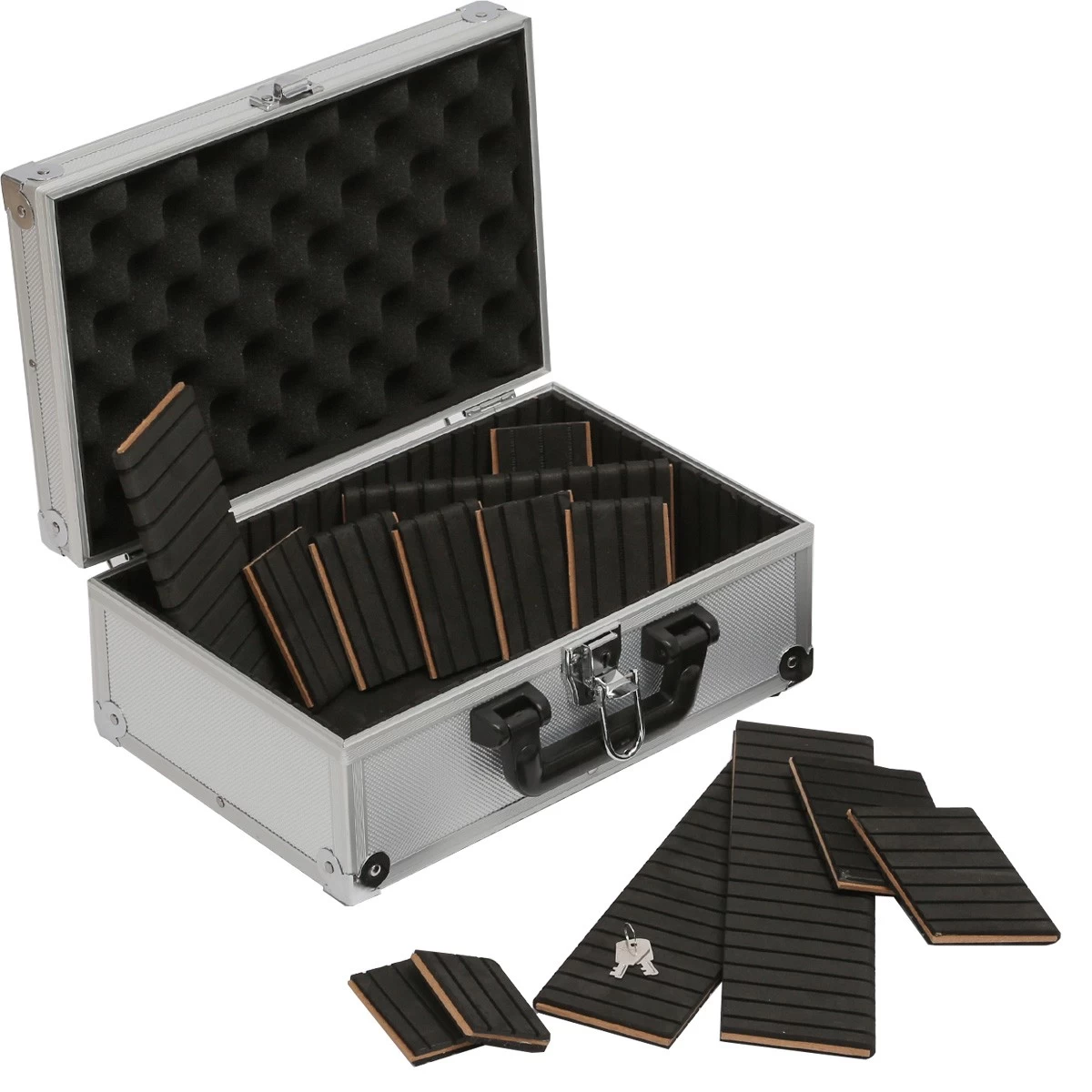 Der Koffer hat einen mit Noppenschaumstoff ausgekleideten Deckel der den Inhalt in Position hält. Weiter liegen ein komplettes Set an Trennern in diversen Längen vor mit dem das Kofferinnere flexibel unterteilt werden kann.
